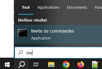 Ouvrez une invite de commandes via le menu démarrer :